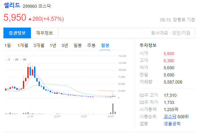 2024년 9월 18일 기준으로 셀리드의 주가는 39,800원입니다. 이는 지난 6개월 동안 바이오 섹터가 전반적으로 변동성이 큰 가운데 약 25%의 상승세를 보여왔습니다. 특히 셀리드는 임상 2상 시험 성공과 면역항암제 기술에 대한 기대감으로 상승한 바 있으며, 이는 주가에 긍정적인 영향을 미치고 있습니다.